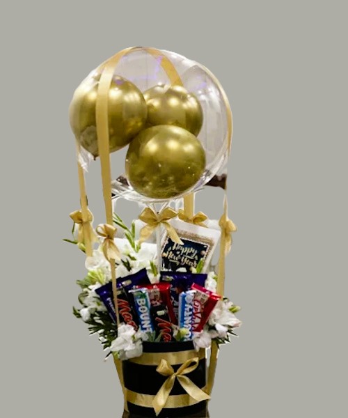 6 Gladiolus flower in box 2 Dairy Milk, 2 Kitkat,, 2 Bounty ,2 Mars Bunch