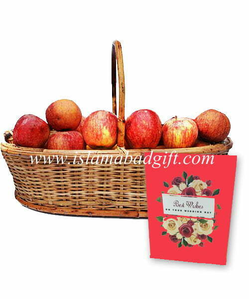 • Kiwi 1kg, Apple 1kg, peach 2kg, Banana 2dozen in wooden basket.