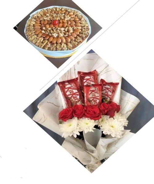 Almond Cake with kitkat bouquet